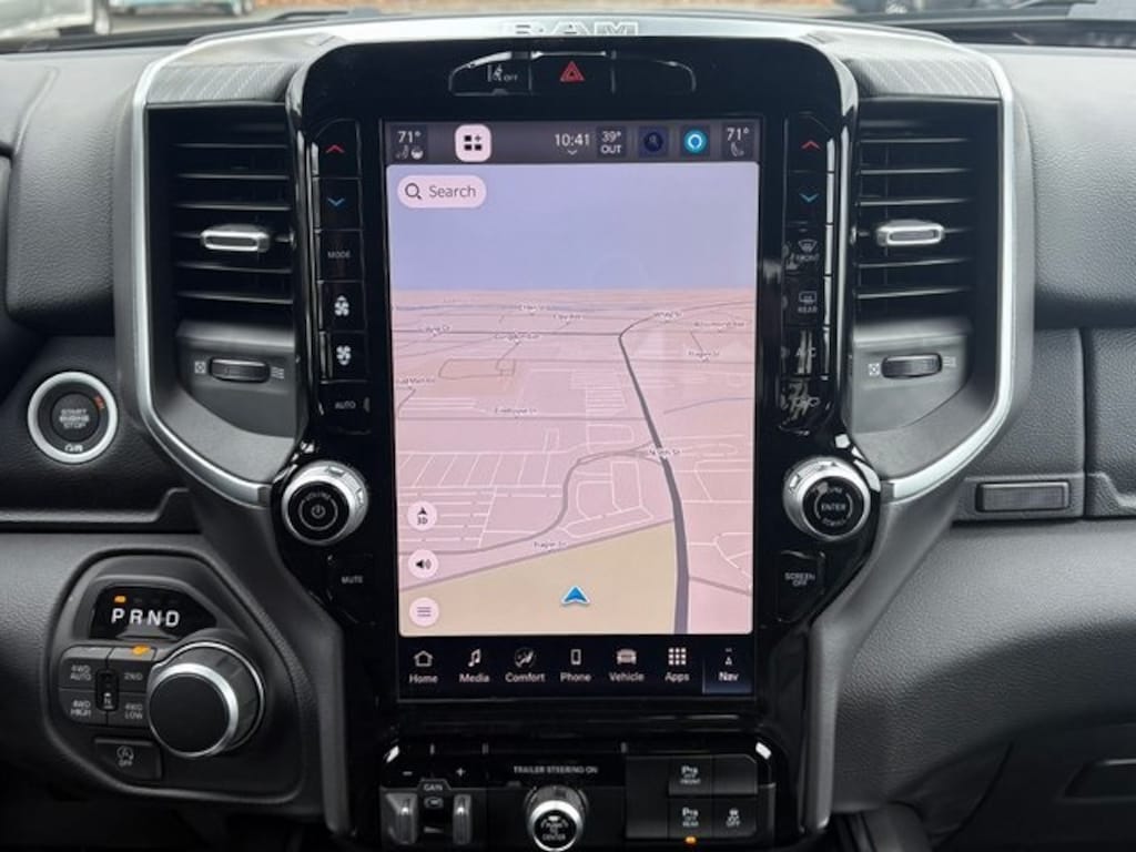 This outstanding-looking 2025 Ram 1500 includes the following equipment and details: ONE OWNER and CLEAN CARFAX/NO ACCIDENTS REPORTED Big Horn Level 2 Equipment Group (115V Auxiliary Power Outlet, 12" Touchscreen Display, 400W Inverter, 4G LTE Wi-Fi Hot Spot, 9 Amplified Speakers w/Subwoofer, Air Conditioning ATC w/Dual Zone Control, Apple CarPlay, Auto Power-Folding Mirrors, Auto-Dimming Exterior Driver Mirror, Auto-Dimming Rear-View Mirror, Black Exterior Mirrors, Black Premium Power Mirrors, Cluster 7" TFT Color Display, Configurable Drive Mode, Connected Travel & Traffic Services, Connectivity - US/Canada, Convex Wide-Angle Exterior Mirror Insert, Exterior Mirrors Courtesy Lamps, Exterior Mirrors w/Heating Element, Exterior Mirrors w/Supplemental Signals, Glove Box Lamp, Google Android Auto, GPS Antenna Input, GPS Navigation, HD Radio, Heated Front Seats, Heated Steering Wheel, Integrated Voice Command w/Bluetooth, Leather Wrapped Steering Wheel, LED Dome Lamp w/On/Off Switch, LED Footwell Lighting, Overhead LED Lamps, Power 2-Way Driver Lumbar Adjust, Power Adjust 8-Way Driver Seat, Power Adjustable Pedals, Premium Overhead Console, Radio: Uconnect 5 Nav w/12" Display, Rear Power Sliding Window, Rear Window Defroster, Remote Tailgate Release, Security Alarm, SiriusXM w/360L, Steering Wheel Mounted Audio Controls, Sun Visors w/Illuminated Vanity Mirrors, Universal Garage Door Opener, and USB Host Flip), Quick Order Package 23Z Big Horn, and Trailer Tow Group (Accent Color Tailgate Handle, Black Trailer Tow Power Mirrors, Manual Folding Exterior Mirrors, Manual Telescoping Mirrors, Mirror Clearance/Running Lights, Power-Adjustable Convex Auxiliary Mirrors, Trailer Brake Control, Trailer Light Check, Trailer Reverse Steering Control, Trailer Tire Pressure Monitoring System, and Trailer Tow Mirrors).