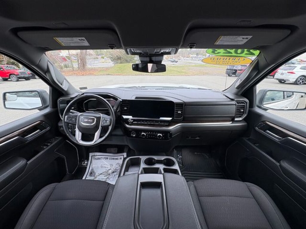 This charming-looking 2023 GMC Sierra 1500 includes the following equipment and details: ONE OWNER, CLEAN CARFAX/NO ACCIDENTS REPORTED, BLUETOOTH/HANDS FREE CELL PHONE, BACK UP CAMERA, 2 SETS OF KEYS, NAVIGATION, and ALLOY WHEELS Cloth Rear Seat w/Storage Package, High Capacity Suspension Package, Preferred Equipment Group 3SB (120-Volt Bed Mounted Power Outlet, 120-Volt Instrument Panel Power Outlet, 2 Charge/Data USB Ports, 2 Type-C Charge-Only Rear USB Ports, 6-Speaker Audio System Feature, Auto-Locking Rear Differential, Body Color Header w/Gloss Black Mesh Grille Bars, Color-Keyed Carpeting Floor Covering, Compass, Deep-Tinted Glass, Electric Rear-Window Defogger, Electrical Steering Column Lock, Front Frame-Mounted Black Recovery Hooks, Front Rubberized-Vinyl Floor Mats, GMC Connected Access Capable, HD Rear Vision Camera, Keyless Open & Start, LED Cargo Area Lighting, Manual Tilt-Wheel & Telescoping Steering Column, OnStar & GMC Connected Services Capable, Power Door Locks, Power Front Windows w/Driver Express Up/Down, Power Front Windows w/Passenger Express Down, Power Rear Windows w/Express Down, Push Button Start, Rear Rubberized-Vinyl Floor Mats, Remote Vehicle Starter System, SiriusXM w/360L, Steering Wheel Audio Controls, Theft Deterrent System (Unauthorized Entry), Wi-Fi Hotspot Capable, and Wireless Phone Projection), Trailering Package (Hitch Guidance), Alloy wheels, Apple CarPlay/Android Auto, Low tire pressure warning, and Navigation System.
