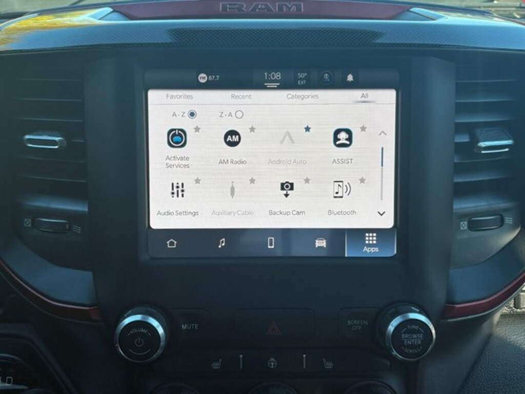 This beautiful 2022 Ram 1500 includes the following equipment and details: BLUETOOTH/HANDS FREE CELLPHONE, BACKUP CAMERA, HEATED SEATS, ALLOY WHEELS, and REMOTE STARTER Bed Utility Group (MOPAR 4 Adjustable Cargo Tie-Down Hooks and Pick-Up Box Lighting), Quick Order Package 27W Rebel, 4G LTE Wi-Fi Hot Spot, 6 Speakers, Air Conditioning, Alloy wheels, Apple CarPlay, Cloth/Vinyl Low Back Bucket Seats, Electronic Stability Control, Fully automatic headlights, Heated Front Seats, Heated Steering Wheel, Low tire pressure warning, Mopar Black Tubular Side Steps, ParkView Rear Back-Up Camera, Power driver seat, and Power steering.